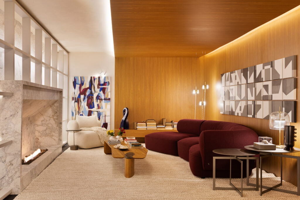 A nova Linha Michelangelo Natura® desempenhou papel central no ambiente, presente na lareira e boa parte das paredes.
