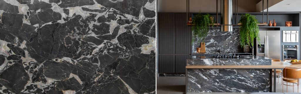 Visual marcante: o fundo escuro torna essa pedra a escolha de quem deseja ousar com muita sofisticação.
