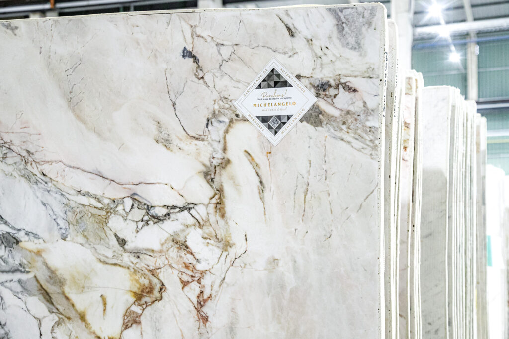 Se você especificou o mármore branco da Michelangelo, conhecido como o mármore que deu origem ao termo mármore branco do Paraná, é fundamental verificar se a sua chapa possui o Selo de Autenticidade Michelangelo®.