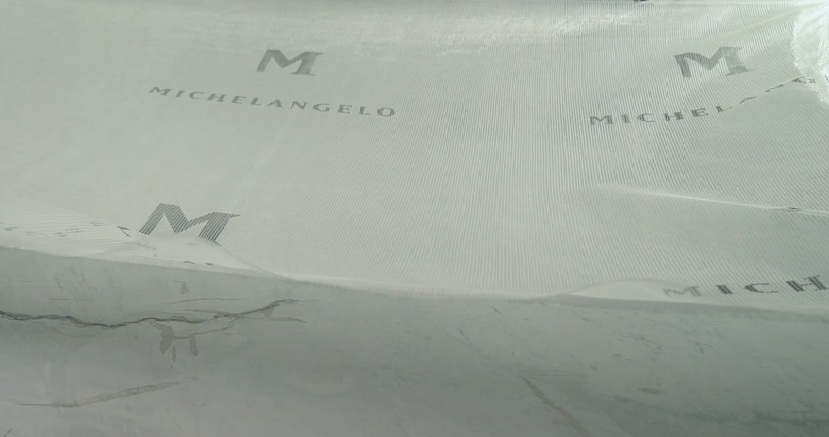 Este selo, colado na frente da chapa, e a tela de proteção com a logo da Michelangelo no verso, garantem a qualidade e a procedência do mármore que você escolheu.